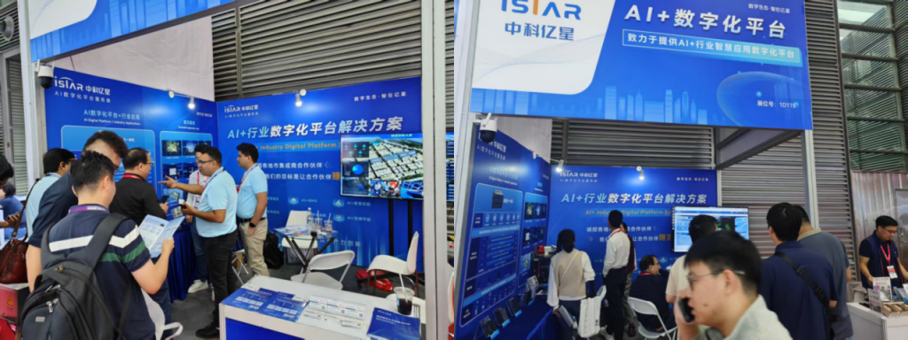 展会期间,中科亿星团队通过现场讲解与产品资料介绍,围绕 “AI+数字化平台”解决方案 的应用价值,与来自不同领域的专业人士进行了深入交流。